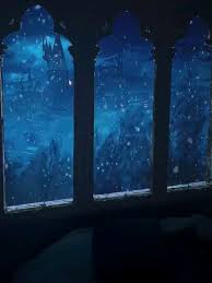 Transform your room into a cozy wizard dorm with a magical snowy castle view.